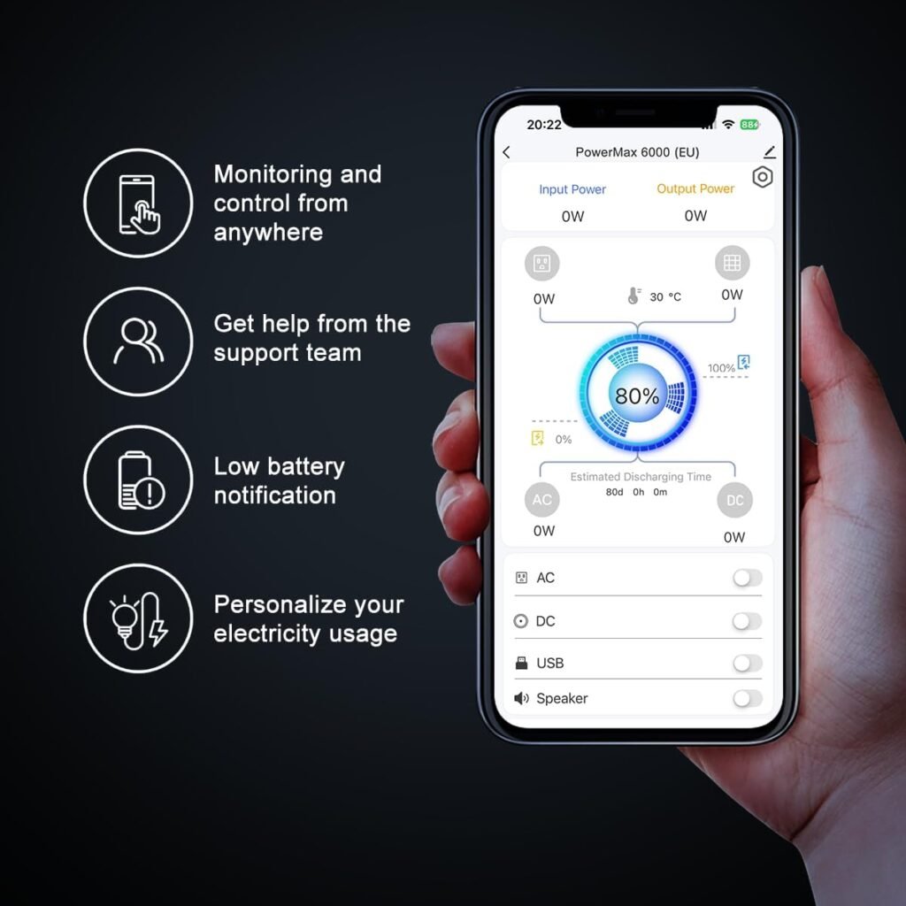 With VoltusBox, you’re always in control. Track input and output in real time, switch between AC, DC, and USB with a tap, and monitor battery health directly from the mobile app. Whether you’re powering tools, running appliances, or keeping essentials charged during an outage, you’ll always know exactly how much energy you have left — and how long it will last.